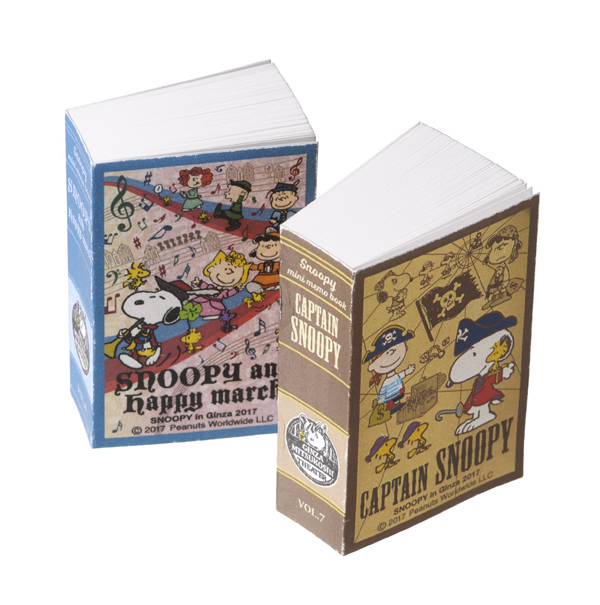 いろいろなおとぎ話の登場人物に扮したスヌーピーと仲間たちがマッチ箱サイズのメモ帳の表紙に登場。