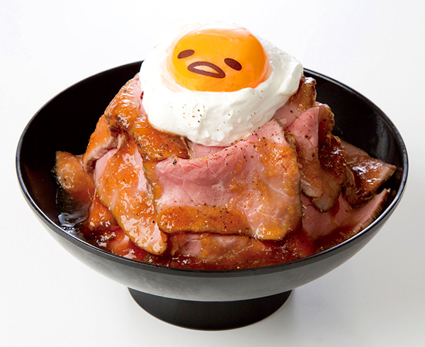 ぐでたまかふぇの定番メニュー、見ているだけでよだれがふぇちゃいそうな「マウンテン!ローストビーフ丼」やあま~い「ぱぁ~んなコッタ」も食べられるよ♪