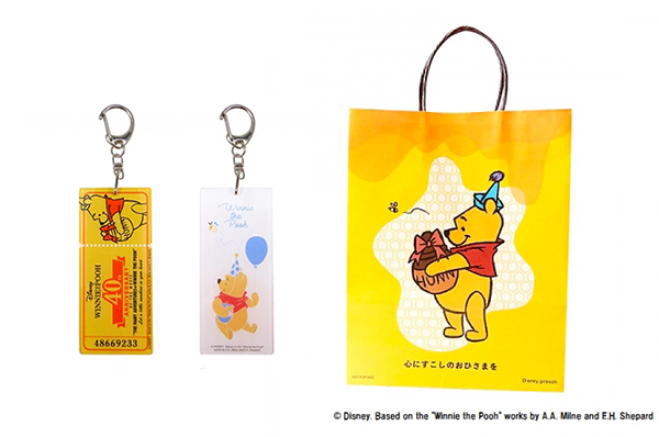 さらに、7月25日(火)から、「くまのプーさん」商品を含む、ディズニー商品を3,000円(税込)以上お買い上げのお客様に、先着で40thロゴの「記念キーホルダー(非売品)」を、8月3日(木)からは、同条件で先着でパーティ柄の「記念キーホルダー(非売品)」をプレゼント。