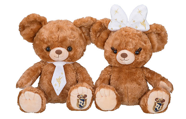 ティンクの刺繍が入った限定デザインのタイとリボンをまとったとってもかわいいユニベアシティ・モカとプリン。