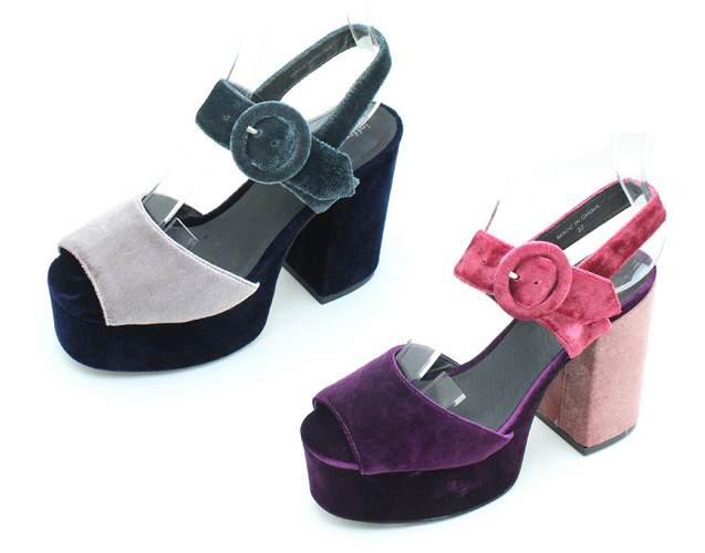 3色の異なるベルベットが初秋の足元を彩る☆ ジェフリーキャンベルからカラーコンビネーションの厚底サンダル登場