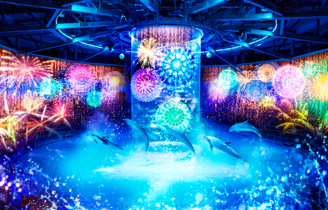 360°に打ち上がるデジタル花火とドルフィンパフォーマンスがコラボ!ネイキッド×アクアパーク品川「花火アクアリウム by NAKED」