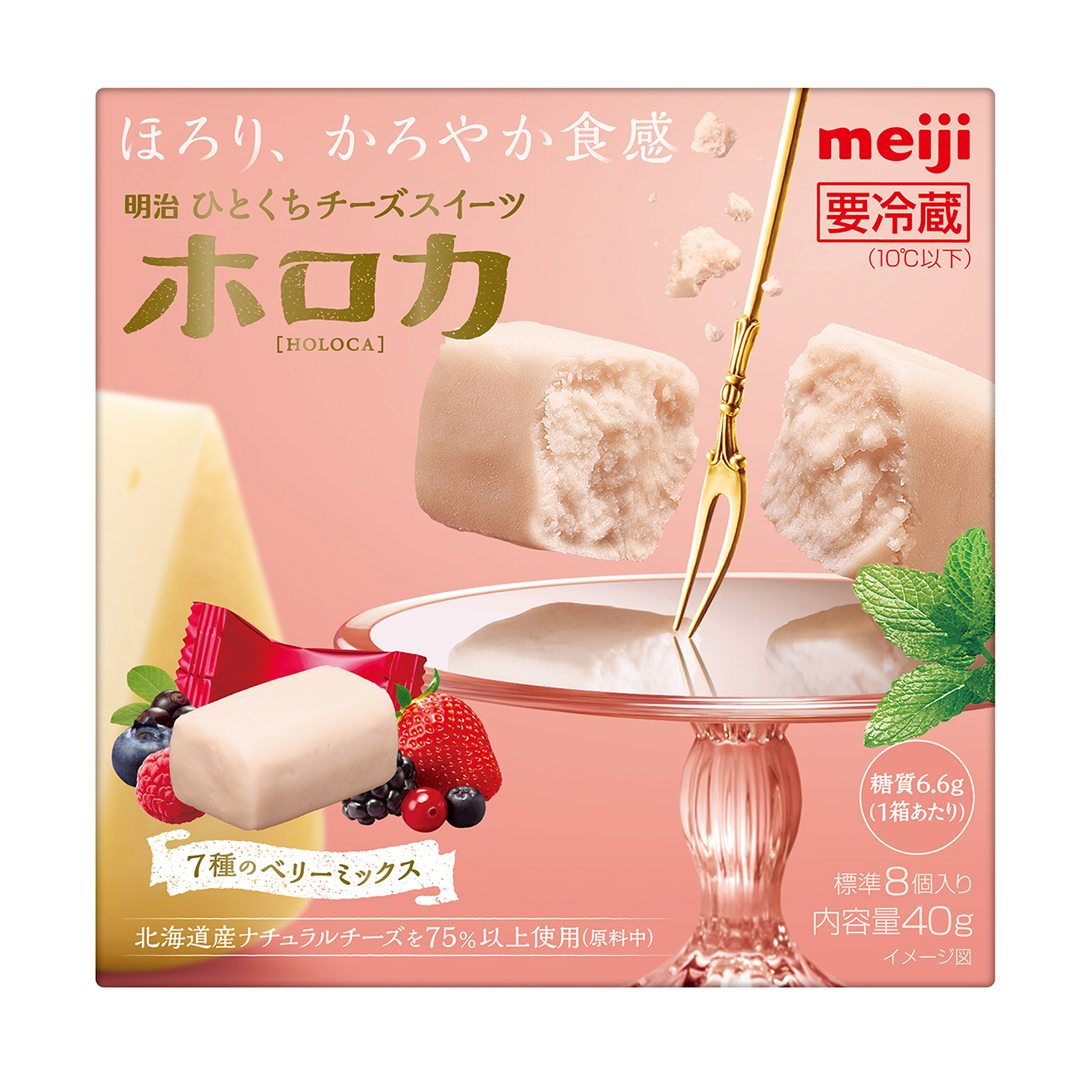 北海道産のナチュラルチーズを贅沢に使い、チーズの余韻もたっぷり楽しめる「ホロカ」は、ほんのりバニラとレモンの香る“プレーン”、ベリーが甘く芳醇に香る“7種のベリーミックス”のふたつの味でラインアップ!
