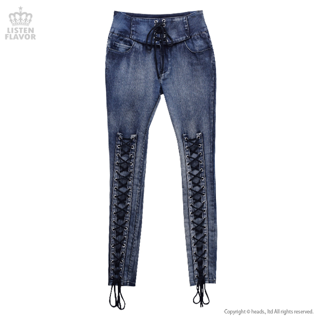 膝上から足首にかけて大胆に続くレースアップのデザインが新しく個性的なスキニーパンツ!細身のシルエットはストレッチが効いて動きやすく、レッグラインをきれいに見せてくれる♡
