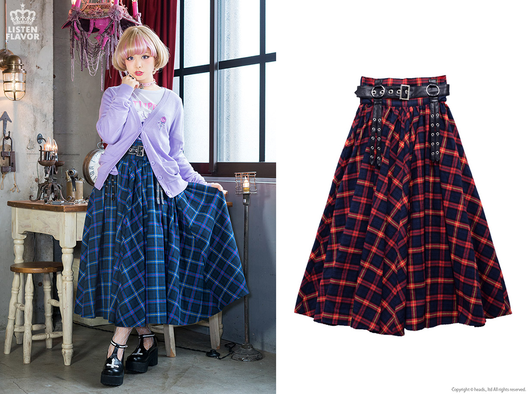 【バックルベルト付き チェックプリーツスカート(裏地付き)】