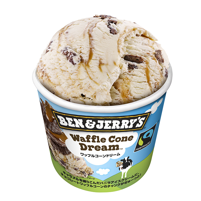 【詳細】日本のベン&ジェリーズ史上初☆ とろ~りスワール(ソース)入りミニカップ『ワッフルコーンドリーム』新発売!