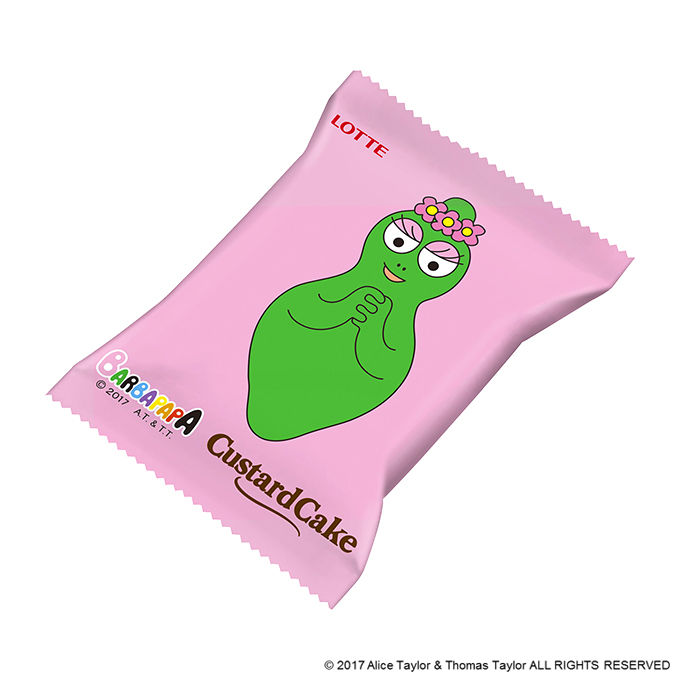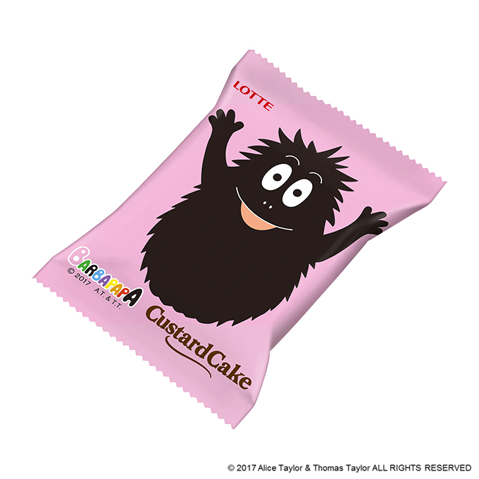 今回、たまご感のあるカスタードクリームとともにカラメルソースが入って、まるでプリンのような味わいが楽しめる「カスタードケーキ プリン」のパッケージには、プリンを持ってペロッと舌を出したバーバパパと、その子どもたちがキュートに描かれているよ☆