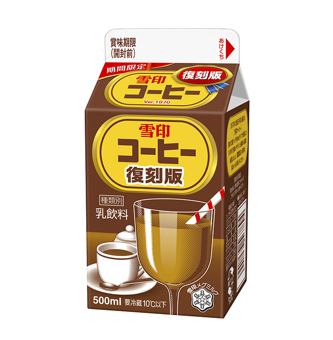 そして今回その一環で販売される「雪印コーヒー復刻版」は、発売当時のしっかりとした甘さの懐かしい「雪印コーヒー」の風味が味わえる仕立てに。パッケージは、初めて紙パック500mlタイプの「雪印コーヒー」を発売した1970年当時のデザイン基調を再現したレトロ感のあるデザインに仕上がっているよ。