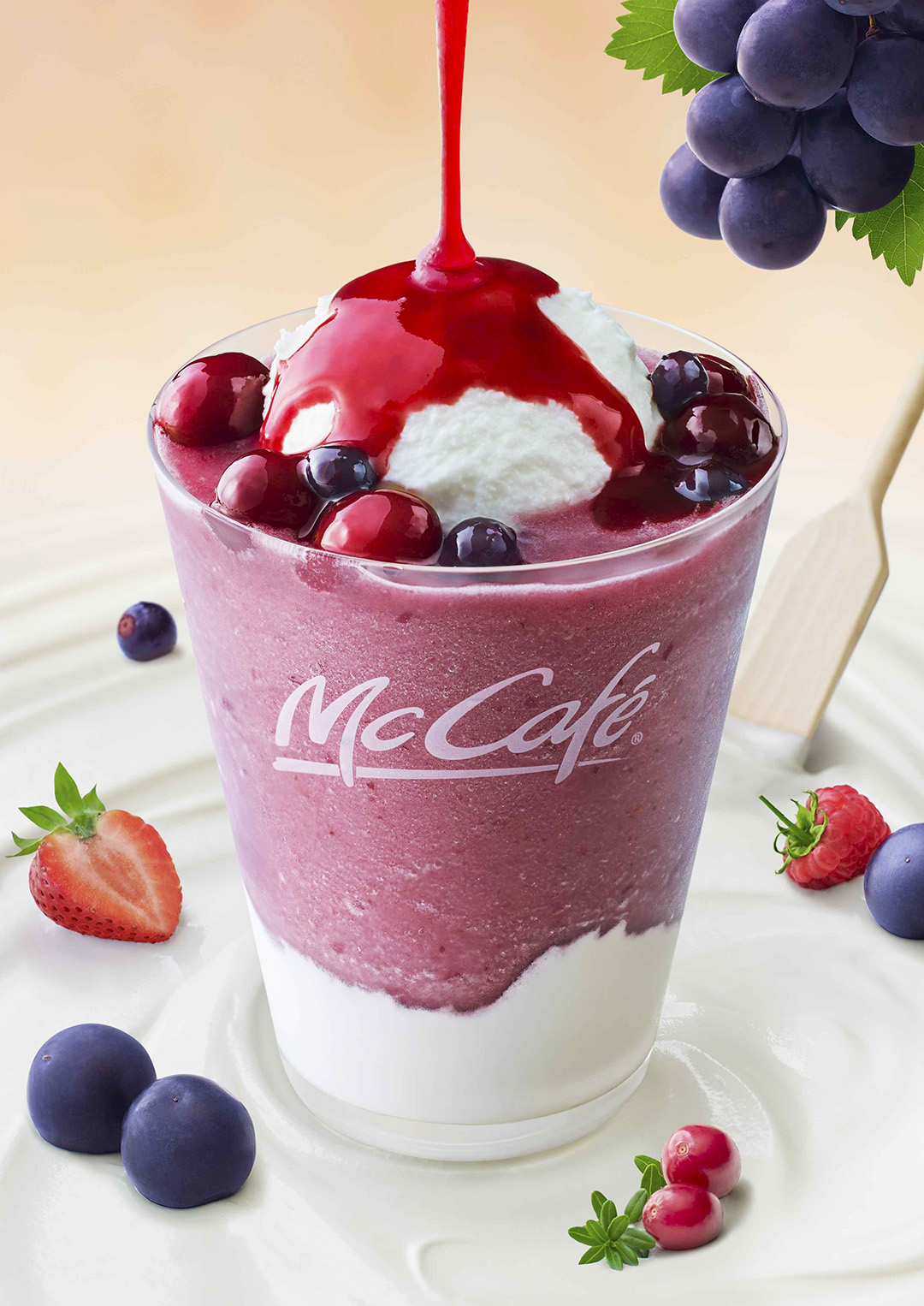 マスカルポーネチーズを使用♪『ふわふわチーズムースとごろっとミックスベリー葡萄(ぶどう)スムージー』マクドナルド90店舗限定で登場!