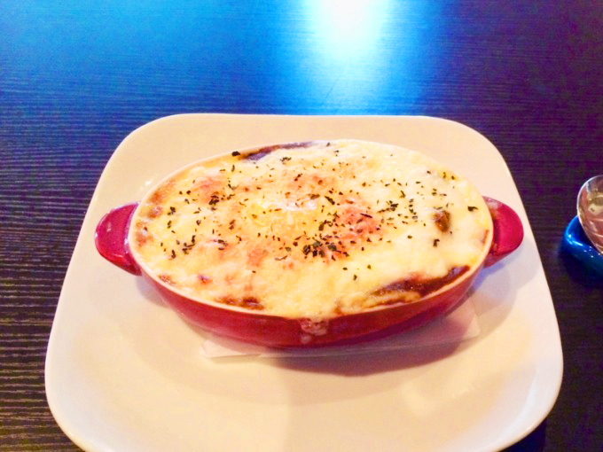 雪に包まれたカレードリア。カレーには北海道産のお野菜を使用。
