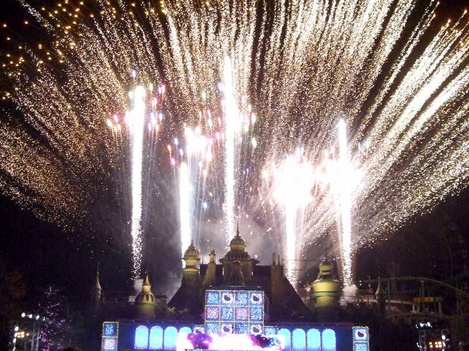 <花火のあがるナイトショー「ハローキティのキラキラパーティナイト」>