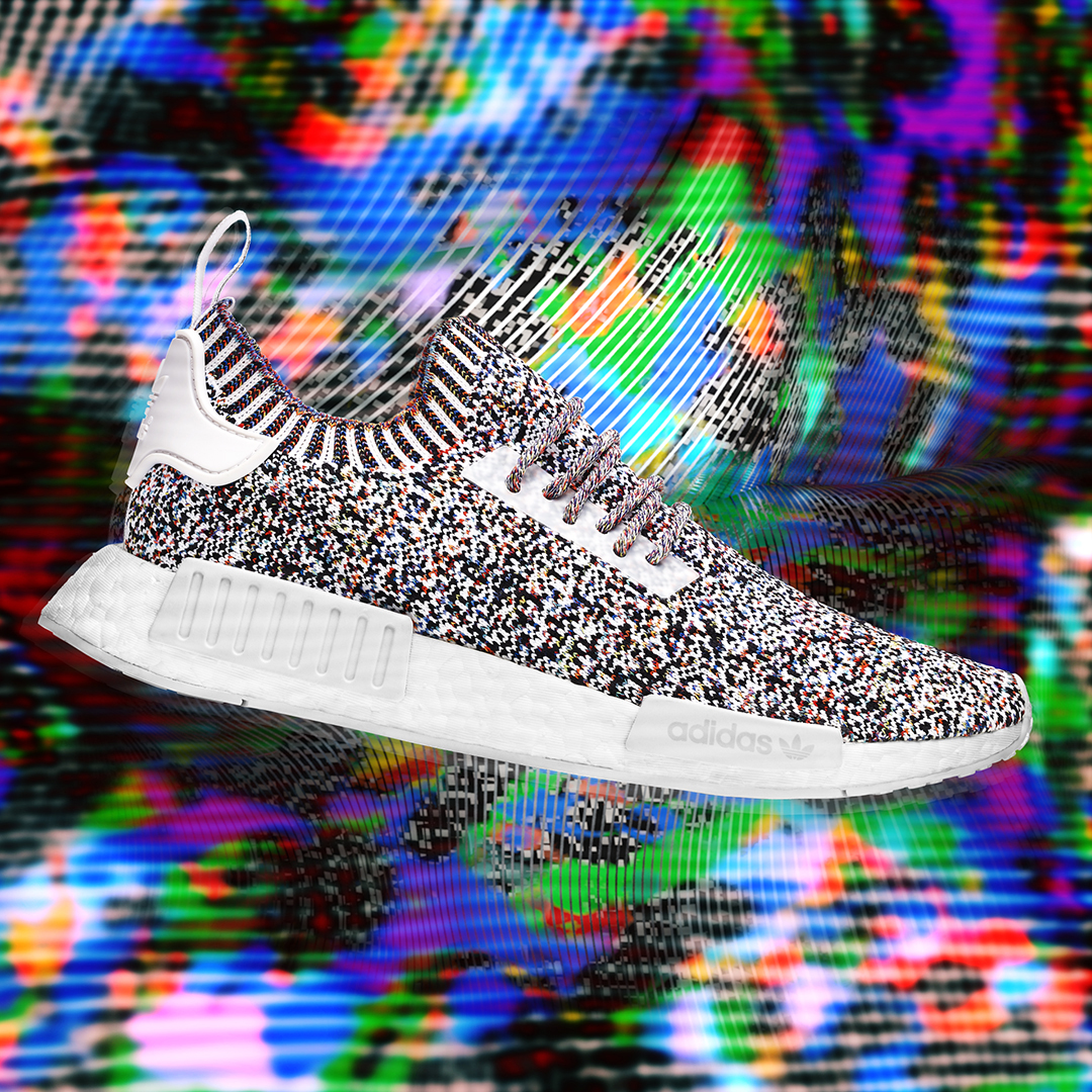 テレビの電波ノイズからインスパイアされたアディダスのユニークなシューズ「NMD_R1 PK Color Satic」で近未来的な足もとを演出☆