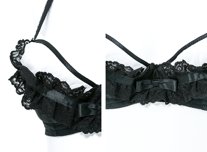 水銀燈の衣装カラーのブラック&ホワイトでまとめたクールな雰囲気漂うアイテム。カップにはブラックのフリルレースがあしらわれ、エレガントさを演出してくれる。