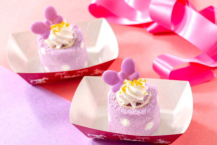 ケーキの上にのったリボンとドットの模様が可愛い「デイジーダックのロールケーキ(バニラクリーム)」は華やかで春の訪れを感じる色合いにキュンとしちゃうね♪