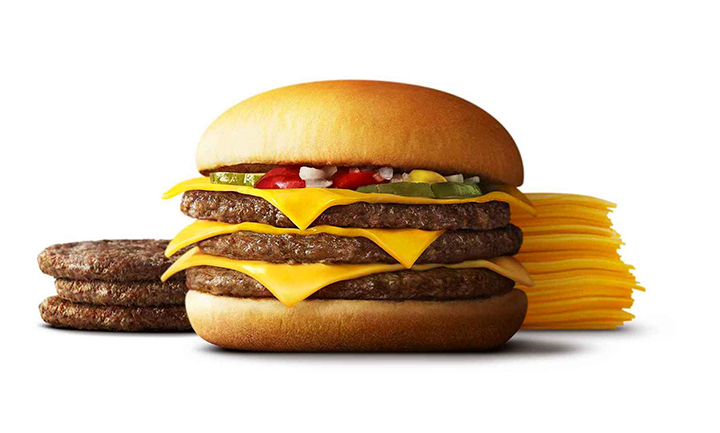 食べごたえ充分な「トリプルチーズバーガー」は、ビーフパティ&チーズがど~んと豪華に3段重ね。昨年、“マクドナルド総選挙”の公約として7日間限定で販売され、一大旋風を巻き起こしたバーガーがついに復活!