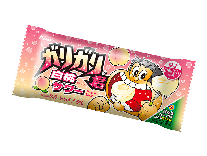 白桃サワー味のアイスキャンディーの中に、ガリガリとした食感が特徴の白桃サワー味のかき氷をイン。国産の白桃果汁と乳製品を使用し、芳醇でまろやかな味わいが楽しめちゃう。