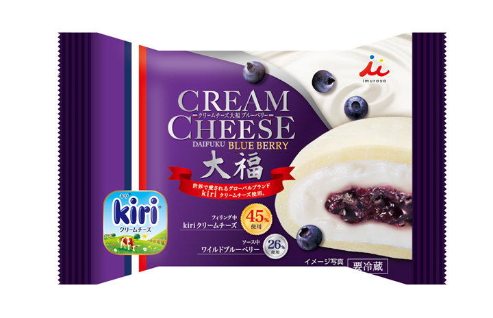 【詳細】おもち生地に濃厚チーズクリーム&甘酸っぱいブルーベリーをイン♡ KIRI®×井村屋コラボ第2弾『クリームチーズ大福 ブルーベリー』新発売