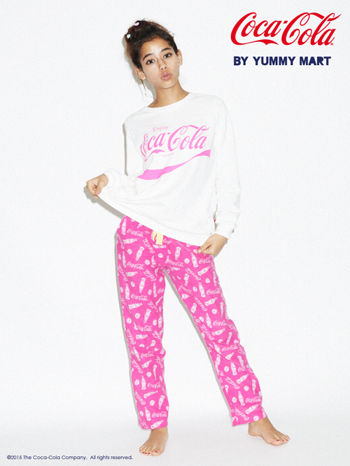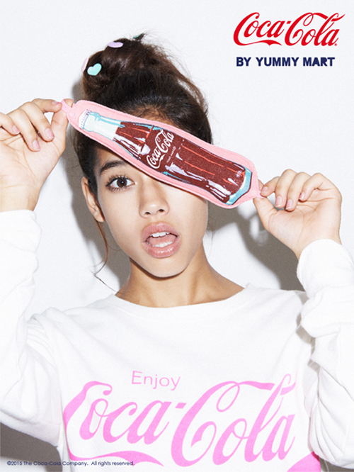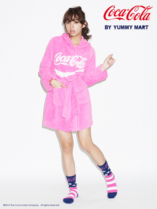 コカ・コーラのアイコニックなロゴやボトルのモチーフと、YUMMY MARTのポップでキュートなデザインが融合したコレクションは、スポーティーなランジェリーやバスローブ、またちょっとしたプレゼントとしても活躍するアイマスクなどの小物を含む全5型を展開。