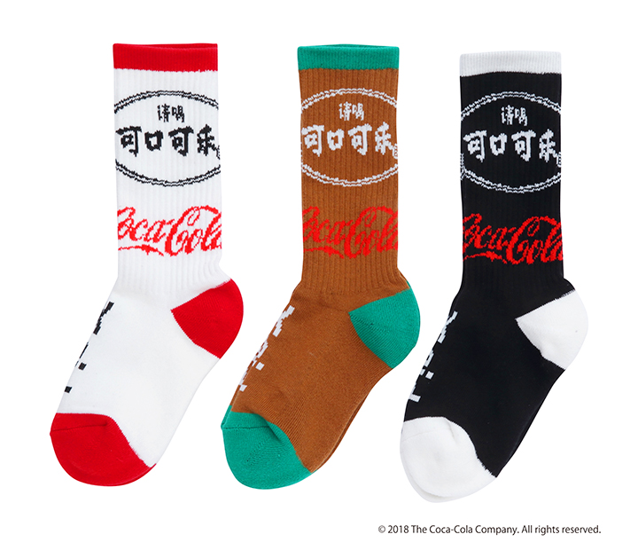 ロゴジャガードのリブソックス。中国で販売されている、漢字のコカ・コーラロゴを使った、トレンド感満載のデザイン。