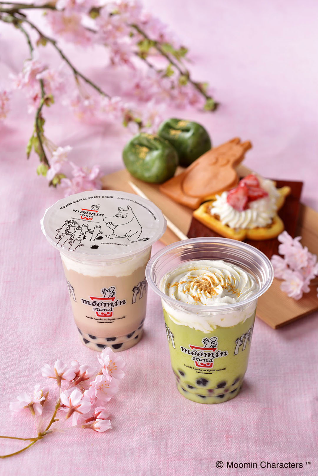 よもぎ風味ミルクにぷっくら小豆ときなこがトッピング♪ ムーミンスタンドより期間限定『よもぎ餅ミルク』新登場