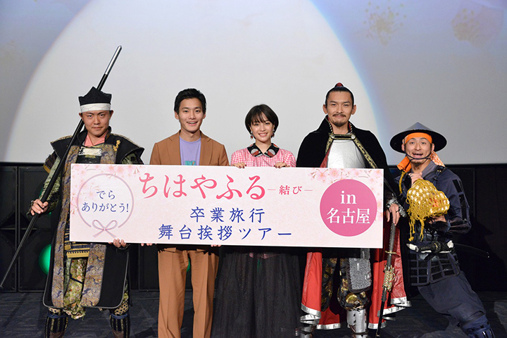 TOHOシネマズ赤池での舞台挨拶では、名だたる戦国武将を排出する名古屋らしく、「武将隊」の織田信長、加藤清正、足軽のが登場。