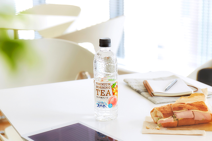 【写真 7/13】今度は“透明な白桃ティー”!! 芳醇な果汁の甘さをすっきり楽しめる『サントリー天然水 PREMIUM MORNING TEA 白桃』新発売