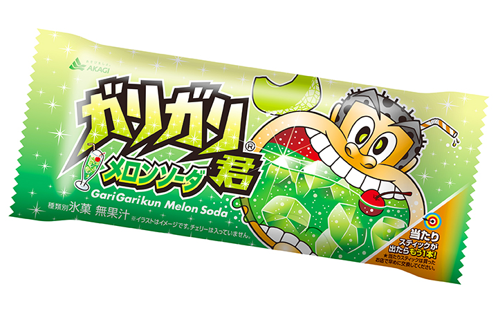 ガリガリ君がメロンソーダを口いっぱいに飲み込む、豪快なパッケージも☆