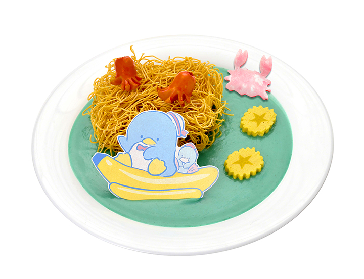 キャラクターをモチーフにしたラーメンやパスタなど、全9種類がラインアップ。