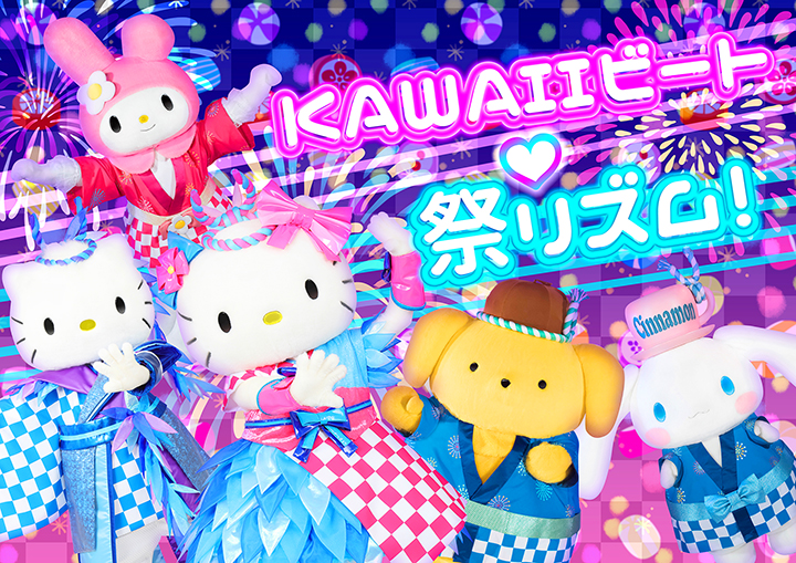 日焼けしたハローキティやディアダニエルなど、キャラクターが夏らしいコスチュームで登場。