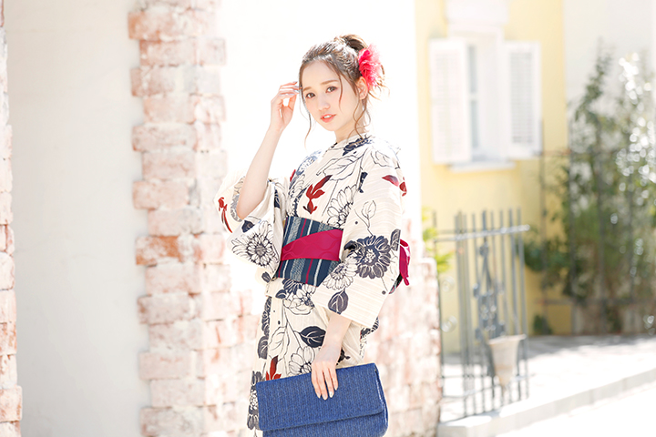 「SOUBIEN bonheur saisons(ソウビエン ボヌール・セゾン)」は、フェミニンからモダン・クールまで、さまざまなイメージの浴衣を展開するブランド。 夏のファッションを色づかせてくれるよ♡