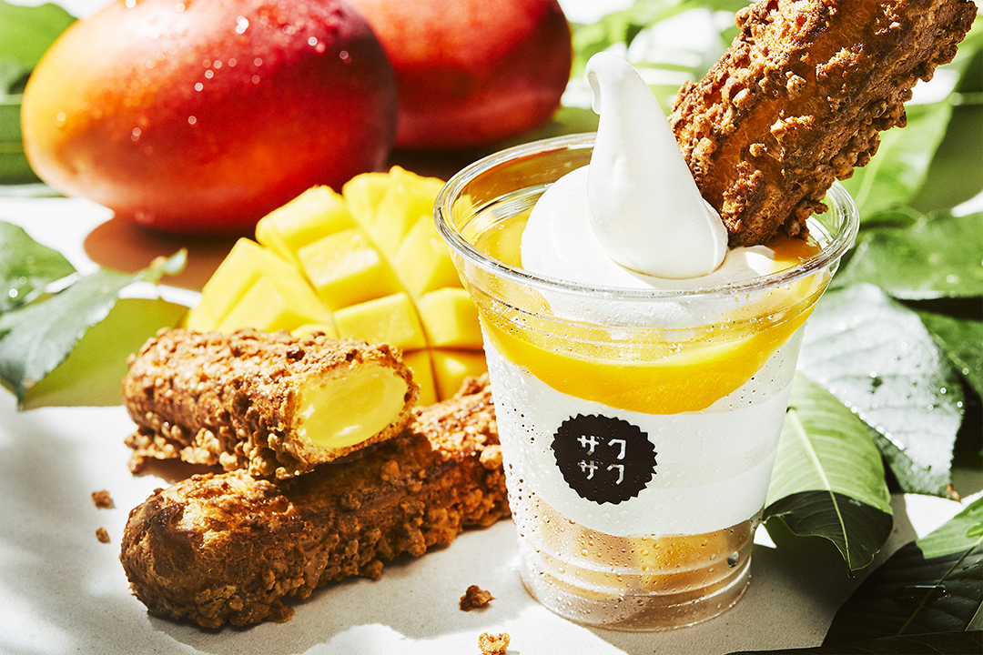 マンゴーづくし☆ 夏のトロピカルフレーバー『マンゴーザクザク』『マンゴーザクザクパフェ』が、シュークリーム専門店「クロッカンシューザクザク」に夏季限定で登場