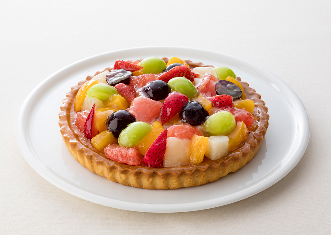 アーモンドクリームを入れて焼き上げたタルトに、8種類の季節のフルーツを飾った華やかなタルト。