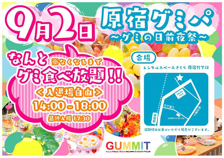 【詳細】入場無料!いろんなグミが食べ放題なイベント『原宿グミパ』9/2(日)開幕♪