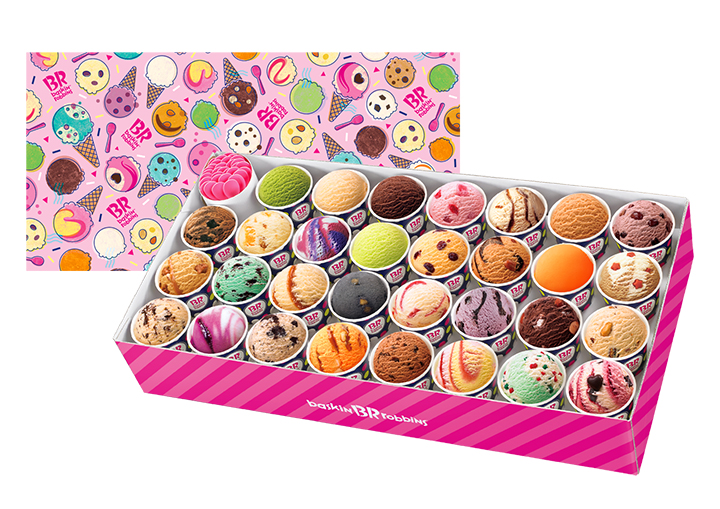 31種類のフレーバーを全部制覇できちゃう、まさに夢の箱。サーティワンならではのサプライズをお持ち帰りして、みんなをびっくりさせちゃって!!
