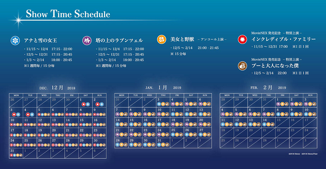 【写真 10/12】プリンセスイルミネーションに「プー」や「美女と野獣」も上演決定☆ カレッタ汐留『Caretta Illumination 2018 ~ディズニーMovieNEX プリンセスイルミネーション~』