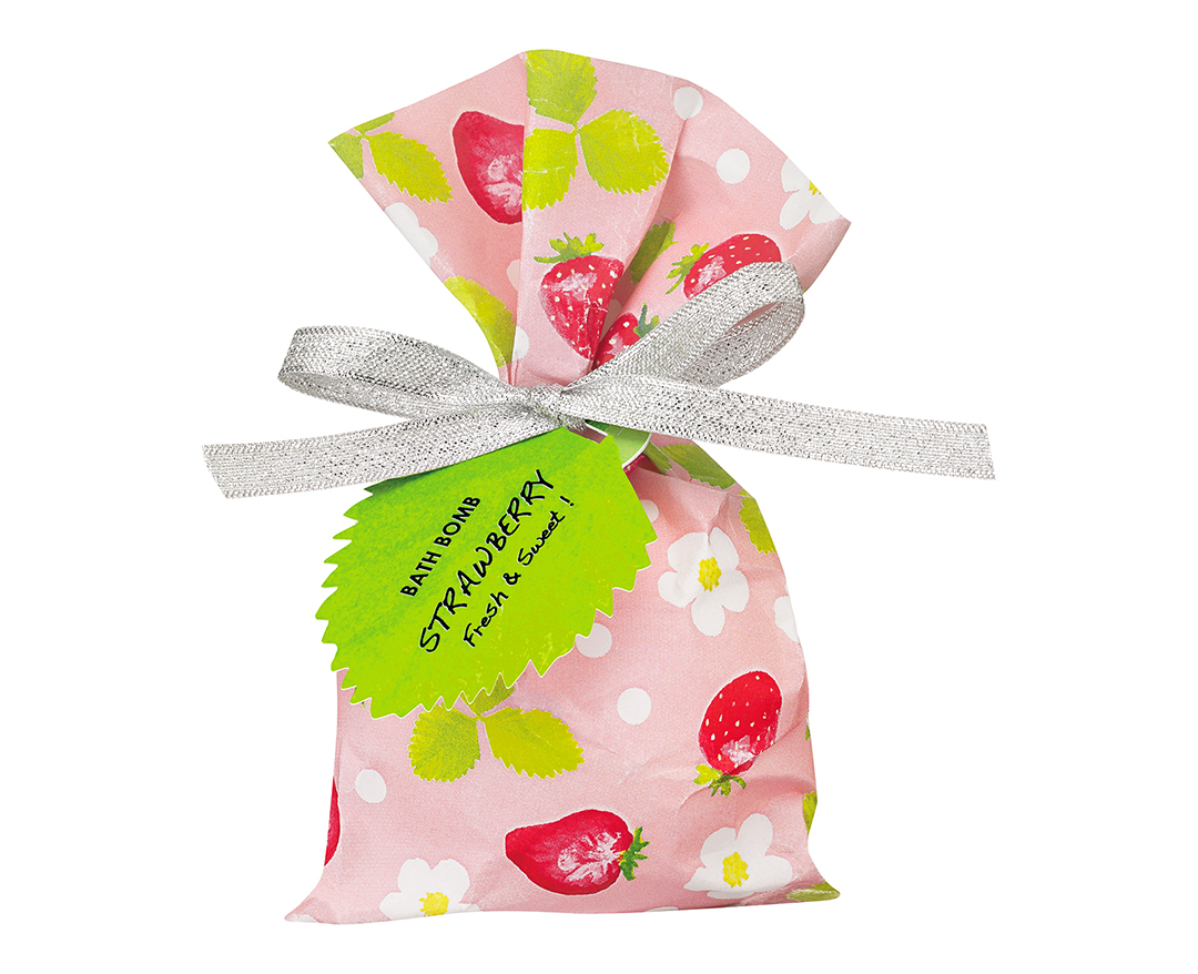 イチゴの香りの発泡入浴料。ちょっとしたギフトにも◎。