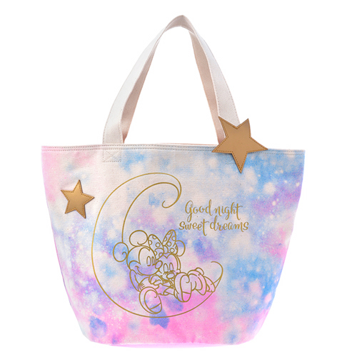 ミッキー&ミニーのトートバッグがお目見え。淡いカラーリングとその濃淡が魅力のデザインで、甘い夢をみていそうなふたりにキュンとしちゃう。大きな星があしらわれ可愛いアクセントに。