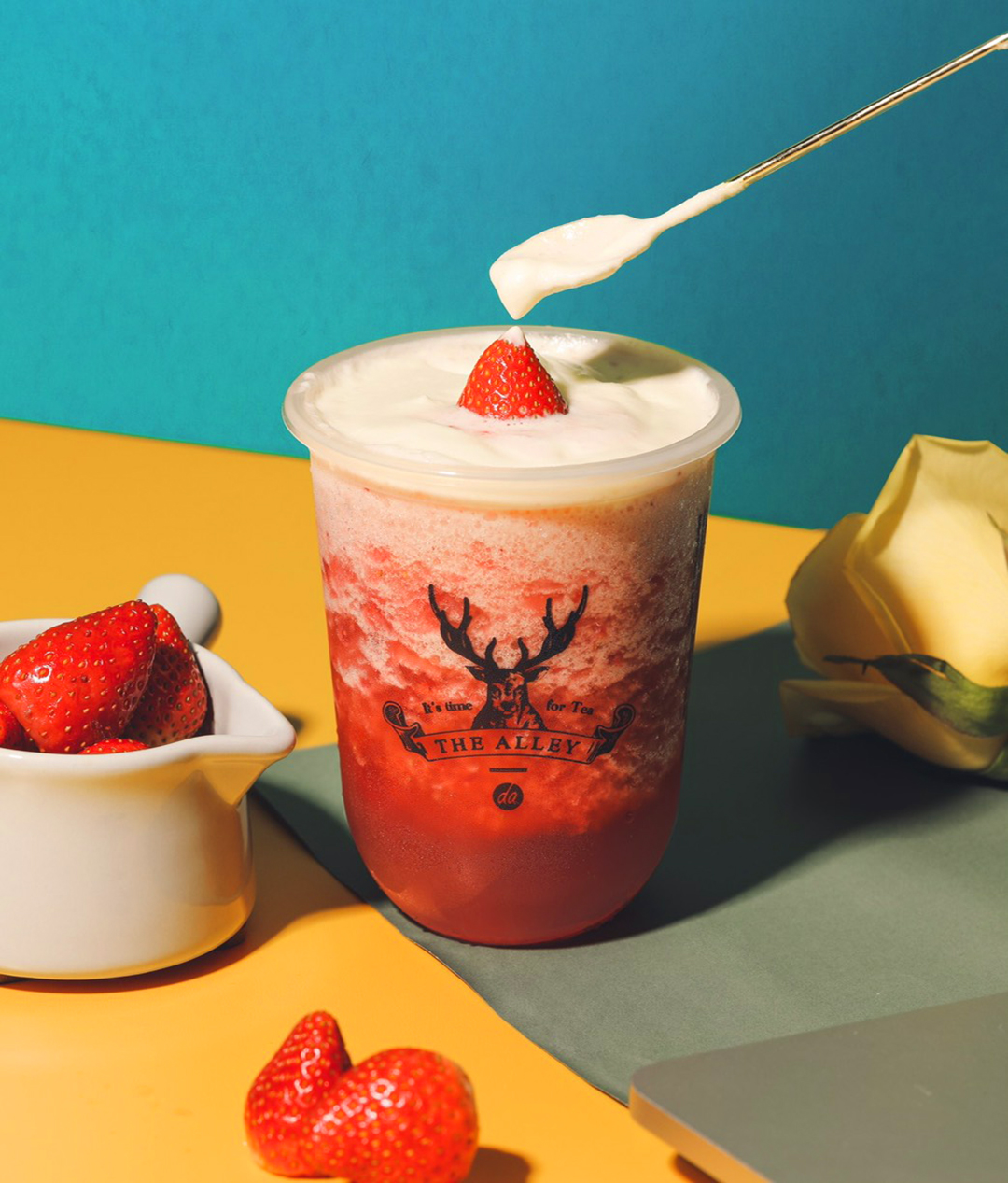 甘酸っぱいストロベリーを贅沢に使用し、白桃烏龍茶と一緒にスムージーに仕上げた一品。とろーりチーズクリームを乗せて、口いっぱいに広がる幸福感を楽しんで♪